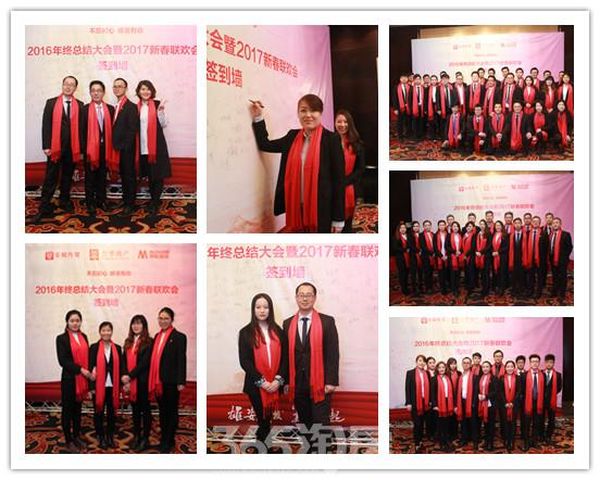 中午12點整,普華地產、樂蟻傳媒及美航裝飾的兩百余名員工陸續(xù)抵達年會會場,簽到現(xiàn)場人流如潮。工作人員為每位到場的員工奉上紅圍巾,并與劉總和各位總監(jiān)在簽到墻前合影留念。鏡頭前大家擺著各種勝利的pose和驕傲的笑容,一張張溫馨的照片記錄下此時的榮耀。